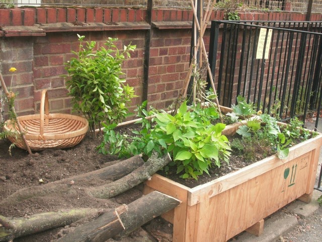 We only have a limited amount of space in our community garden by the entrance to Taverner Square. So, I created a much more modest stumpery. In keeping with our spirit of re-using things which are otherwise throwing away (which we learned from out very good friends the Wombles of Wimbledon Common: